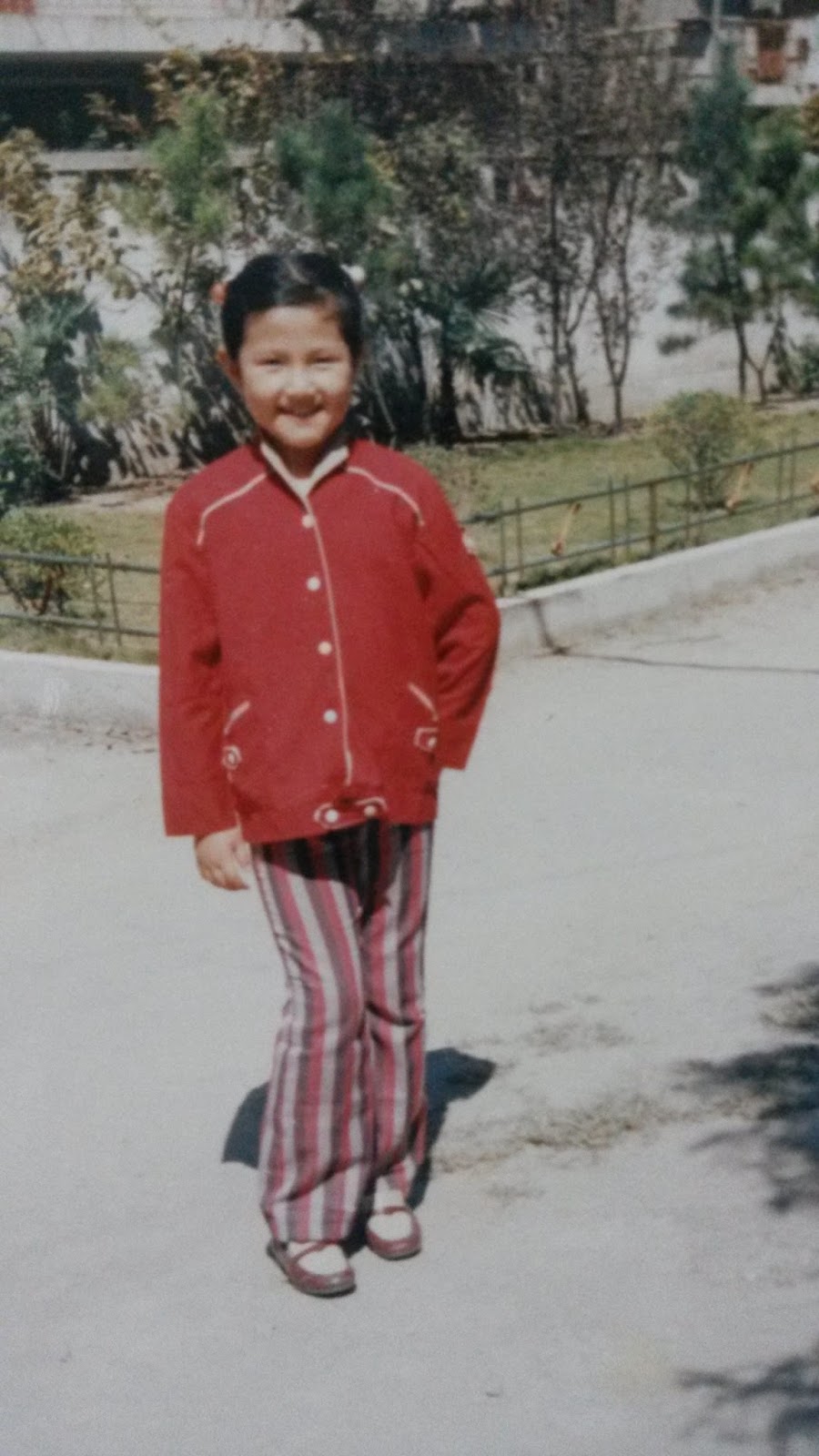 比如我刚来上海,在宝钢八村我自己家77号门口,拍了一张照片,穿的衣服就是我妈妈自己做的(照片中这件衣服还特别大,是我妈妈特意做大几号,以便可以多穿几年)