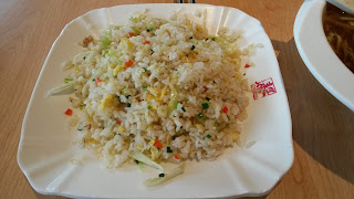 时间隔了2年半有余,再去那里吃饭,同样的培根虾仁炒饭,只装了半个盘子