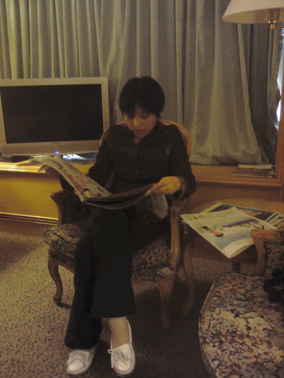 后来就买很夸张颜色的衣服比如白色且这种白的颜色很难看的风衣,大红色上衣,鹅蛋青TEE,红色高跟鞋且镶嵌复杂花纹,以及很怪的一种绿色的TEE领口还特别低,各种少数民族印花式样的五颜六色的棉布裙子(http://ytilauxes.blogspot.tw/2016/03/blog-post_56.html http://ytilauxes.blogspot.tw/2016/01/blog-post_691.html http://ytilauxes.blogspot.tw/2016/01/blog-post_911.html)
