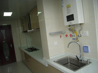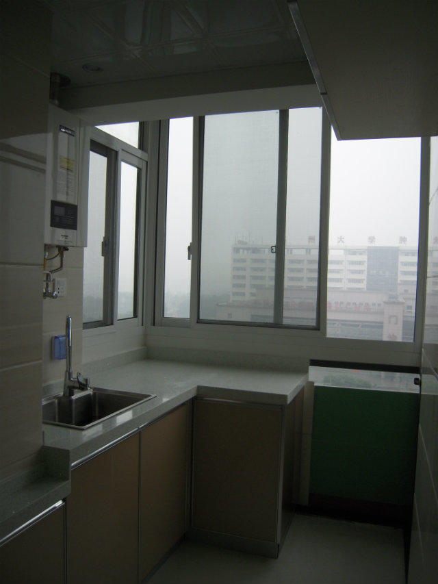 厨房就只有放煤气灶和一个水池的空间,没有料理台的空间,以至于我表弟把煤气灶放在厨房,而料理台和水池放在阳台,这样就很不方便,洗完菜,切好菜,却需要再拿着走一段路,再扔进炒锅里去炒